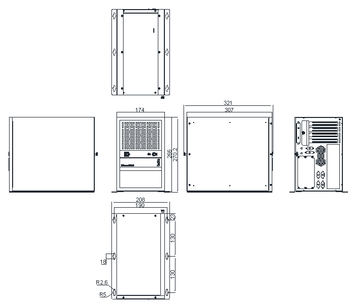 | 机箱尺寸 | 290mm(宽) * 290mm(深) * 174mm(高) | |